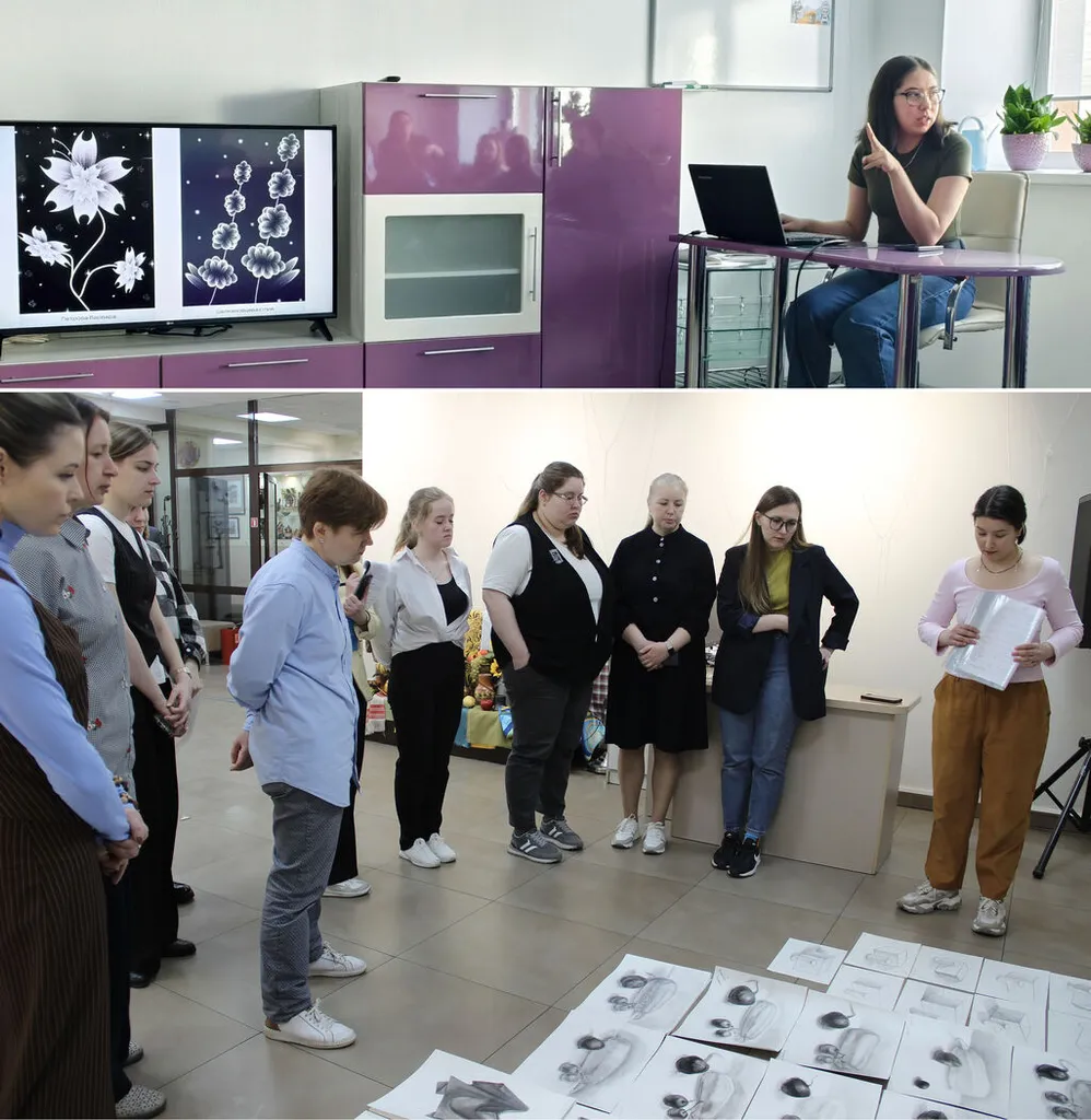 Преподаватель графического дизайна Д. В. Ошуркова продемонстрировала работы обучающихся по программам «Графический дизайн: от концепции до креатива» и «Дизайн для всех: погружение в компьютерную графику».