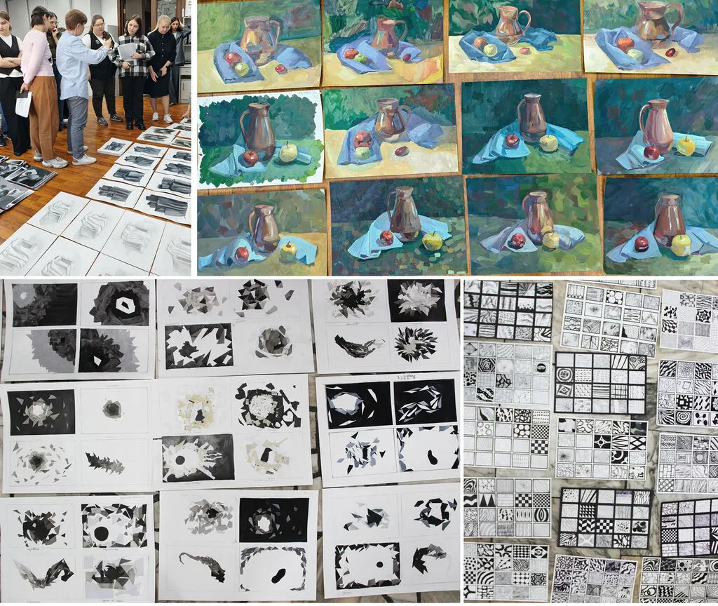 Преподаватели Конькова А.В. и Шатохина М.С. порадовали яркими, выразительными композициями учащихся 10 лет, осваивающих общеразвивающую программу «Азбука юного художника». В 1 классе у преподавателя Давыдовой А.С. отмечены удачные колористические образы, созданные детьми в задании «Прогулка в лесу» и "Мой друг". Учащиеся 2 класса преподавателей Пиварь А.А и Коньковой А.В. отличились живописными качествами в работах гуашью и, старательно выполненными, графическими упражнениями по композиции.