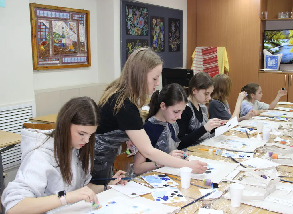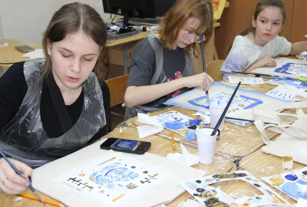 В ДХШ г. Кемерово в рамках программы «Пушкинская карта» прошёл мастер-класс «Русские мотивы» по росписи шоппера.